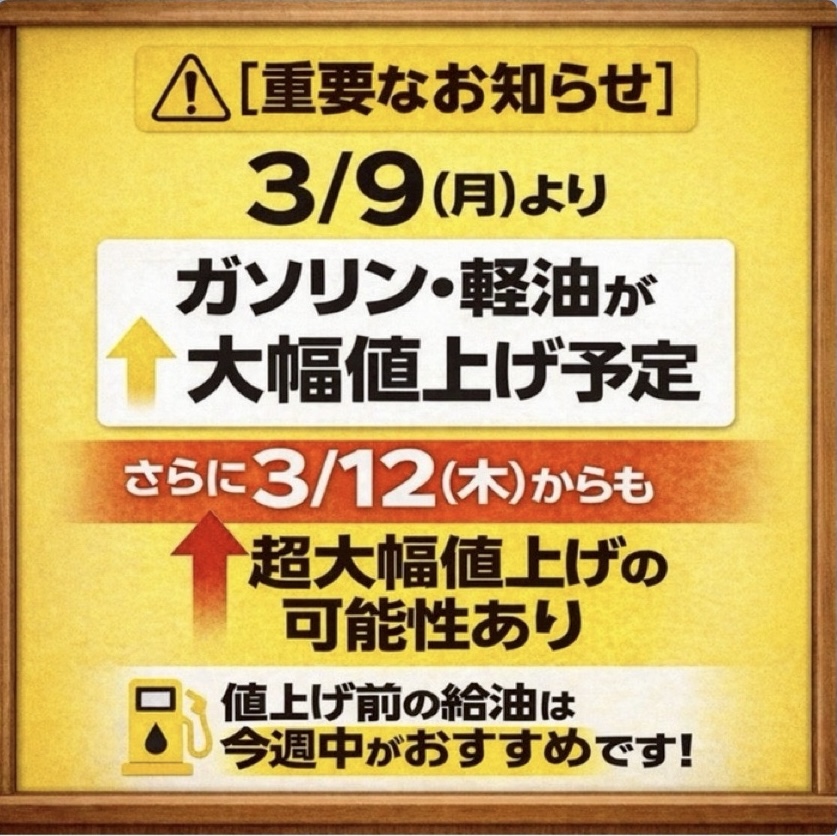 ガソリン値上げ前に給油を!春のタイヤセールもお見逃しなく🚗|Dr.Driveセルフ豊橋立岩SS|202603101723