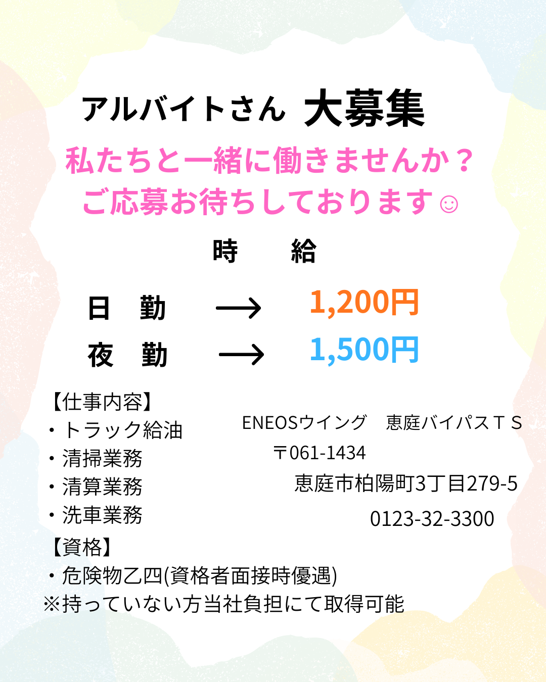 恵庭バイパスTSで楽しく働く!求人情報❄️