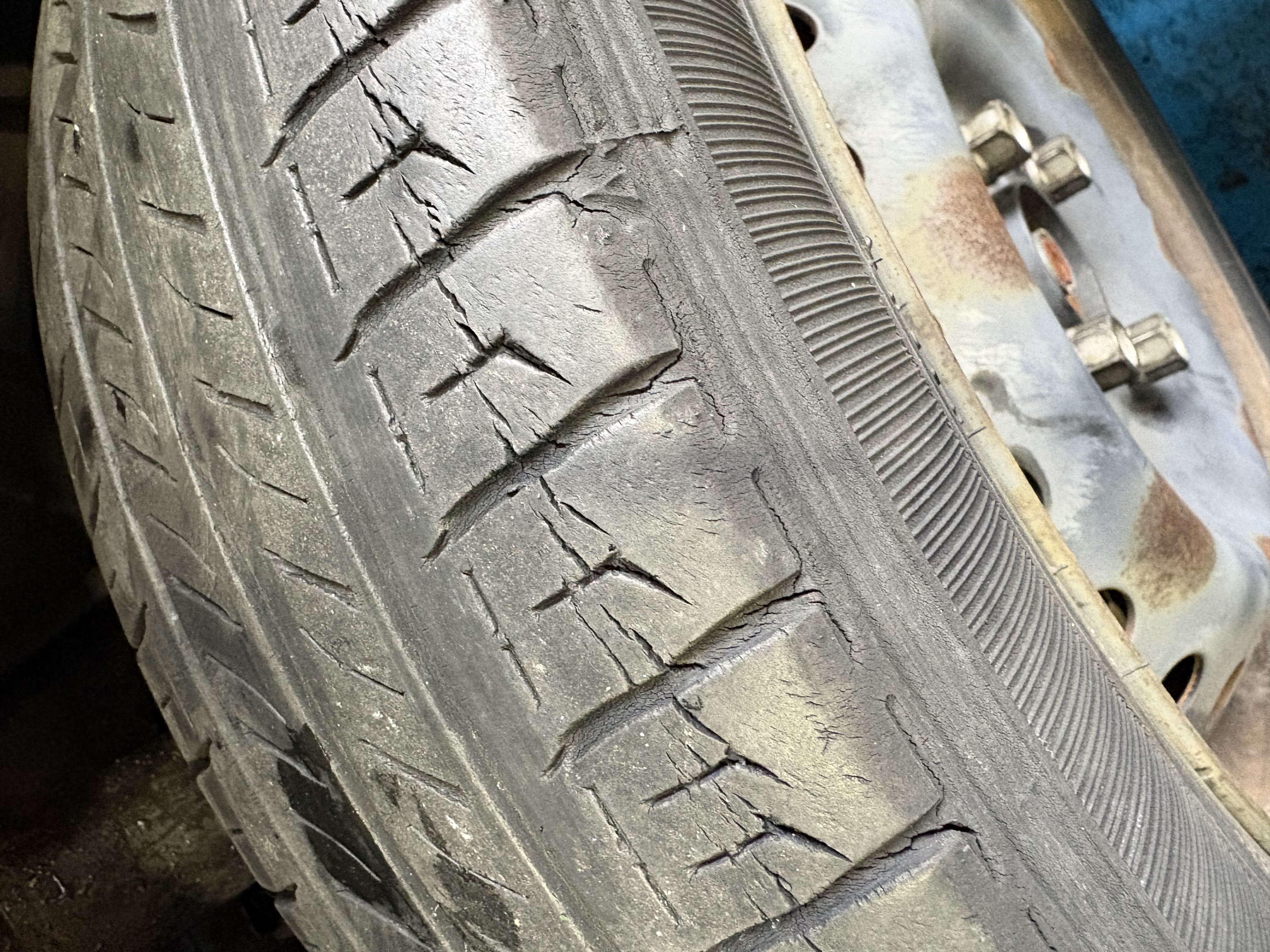最近、タイヤ交換のお客様がとても多くて忙しい毎日です。特に驚いたのは、10年前のタイヤを使っているお客様がご来店されたこと!タイヤには寿命があり、長年使っているとゴムが劣化してひび割れが発生します。そのまま走行を続けると、バースト(タイヤが破裂すること)につながる危険があります💦安全運転のためにも、定期的なタイヤ点検や交換はとても大切ですよ!