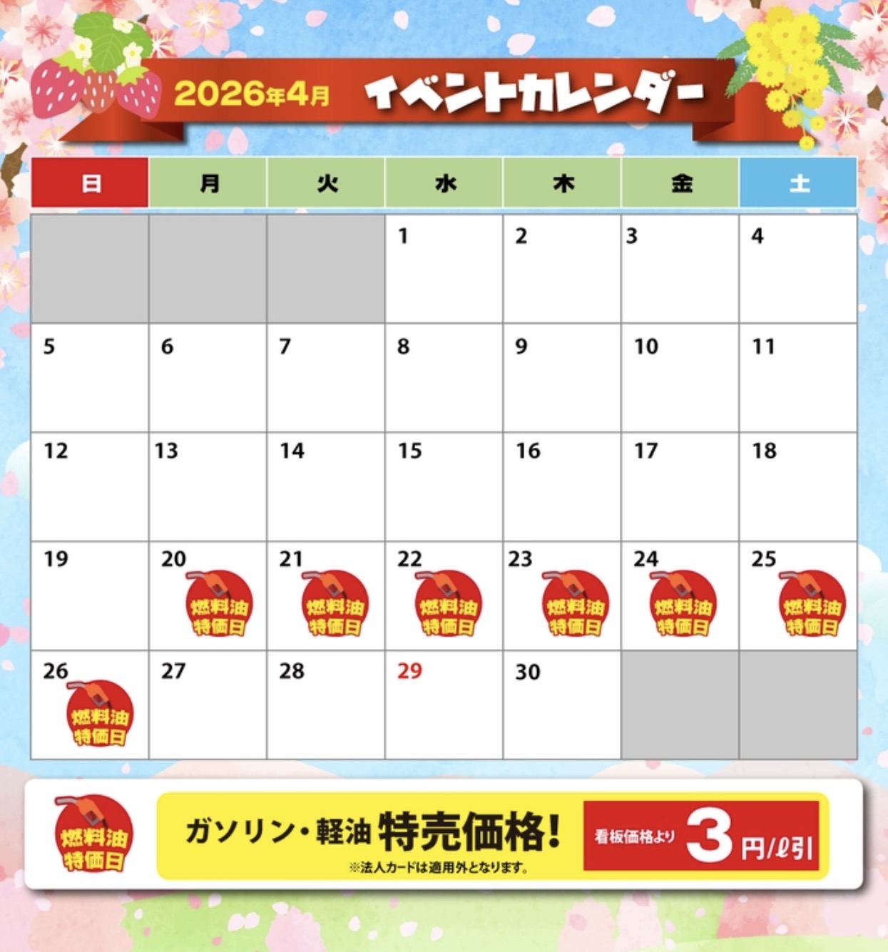 こんにちは!本吉原SSのアルバイトスタッフです😊✨今日は春らしい晴れやかな一日でしたね🌸 気温も上がってきて、ドライブが楽しくなる季節になりました。そんな中、本吉原SSでは4月30日までタイヤキャンペーンを実施中です!🚗💨 「そろそろタイヤの交換時期かな?」と感じている方や、「タイヤの溝やひび割れが気になる…」という方にはぴったりのチャンスです。お得な価格で新しいタイヤに交換できるので、ぜひこの機会をお見逃しなく!ガソリンスタンドでは、給油だけでなく車の点検やメンテナンスも大切なサービスのひとつです。特にこれから春本番を迎え、雨の日も増えてきますよね☔️ そんな時期だからこそ、ワイパーやウォッシャー液のチェックは欠かせません。視界が悪くなると安全運転にも影響しますので、定期的な点検をおすすめしています。また、オイル交換やタイヤの空気圧チェックも忘れずに行いましょう!エンジンオイルは車の心臓とも言える部分なので、汚れたり量が減ったままだとエンジントラブルにつながることも…。タイヤの空気圧が低いと燃費も悪くなってしまいますし、偏った減り方だと安全面でも心配です。当店ではスタッフが丁寧にチェックしますので、お気軽にご相談ください。さらに、本吉原SSでは洗車サービスも人気です。花粉や黄砂が多いこの季節は、車体に汚れが付きやすくなります。ピカピカに洗車して気持ちよくドライブしませんか?✨これからゴールデンウィークのお出かけ前にも、ぜひ本吉原SSで愛車の点検・メンテナンスをどうぞ!キャンペーン期間中は混み合うことがありますので、お早めのご来店がおすすめです😊皆さまのご来店をスタッフ一同心よりお待ちしております!