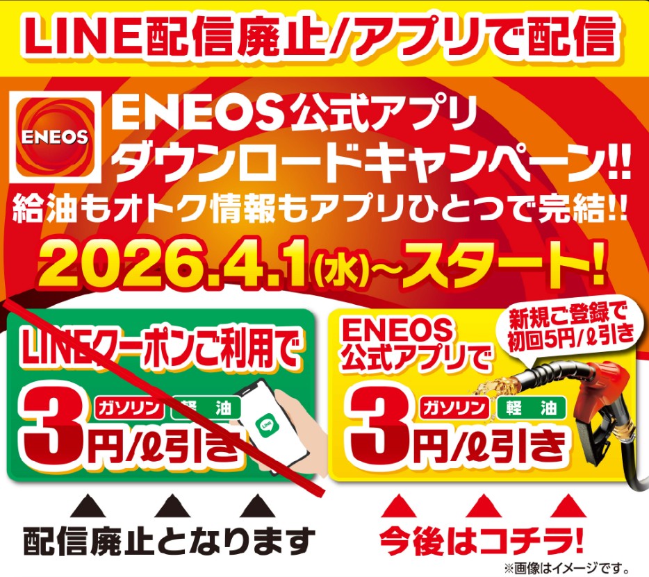 実施期間: 2026.4.4 ~ 2026.5.31ENEOSアプリ燃料割引