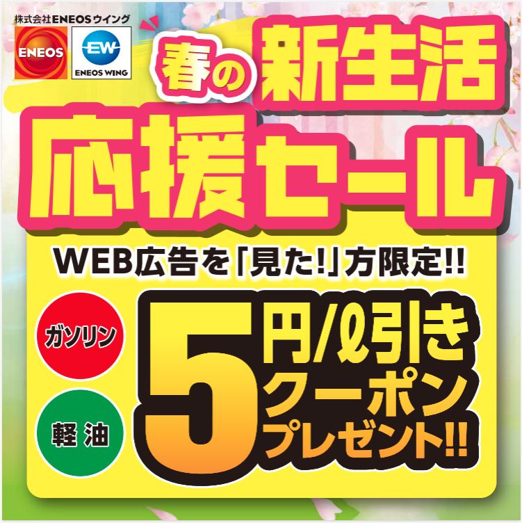 ・4本タイヤ交換実施で2年間ガソリン・軽油5円引き