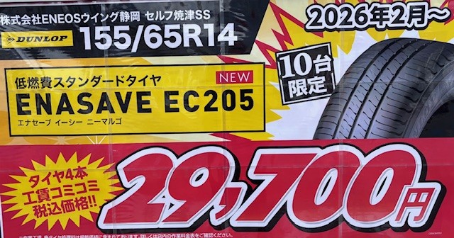 今日はとっても気持ちのいい晴れの日で、冬らしい澄んだ空気が広がっていました⛄️今日はガソリンスタンドで新しい出来事がありました!ダンロップから新しいタイヤ「EC205」が登場したんです🚗💨このタイヤは、雨の日でもしっかりグリップしてくれるのが特長。冬場は特に路面が冷たくなって滑りやすいので、安全運転のためにもタイヤ選びはとても大切ですよね。ご来店いただいたお客様にも、タイヤの空気圧や減り具合を一緒にチェックすることをおすすめしています。もちろん、ワイパーやオイル、ウォッシャー液も点検しておくと安心です!そして今日は手洗い洗車もたくさんしました🚿✨冬は道路に融雪剤やほこりがつきやすいので、車をキレイに保つためにも定期的な洗車がとても大切。手洗いだと細かい部分までピカピカになるので、お客様にも「気持ちいい!」と喜んでいただけました。最近はディズニーランドにも行ってきて、リフレッシュできたばかり!楽しい思い出を胸に、お仕事も元気いっぱい頑張っています😊これからも寒さが続きますので、お車のトラブル予防として定期点検をおすすめします。特にバッテリーの消耗やタイヤの状態は、この時期要注意です。お出かけ前にはぜひセルフ焼津SSでチェックしてくださいね!今後も季節ごとのキャンペーンなどお得な情報を発信していきますので、お楽しみに!皆さまのご来店を心よりお待ちしています💕