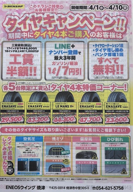 春のドライブ準備におすすめタイヤ交換と手洗い洗車セール開催中🚗|セルフ焼津SS|202603061553