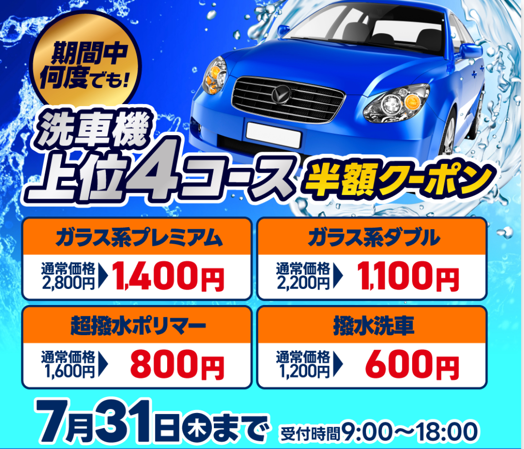 ②洗車機上位4コース半額‼️