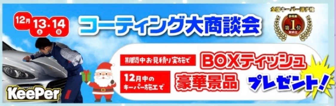 この期間中にコーティングご予約いただくとサンタさん🎅からの素敵なプレゼントがあるかも‥⁉︎🎁