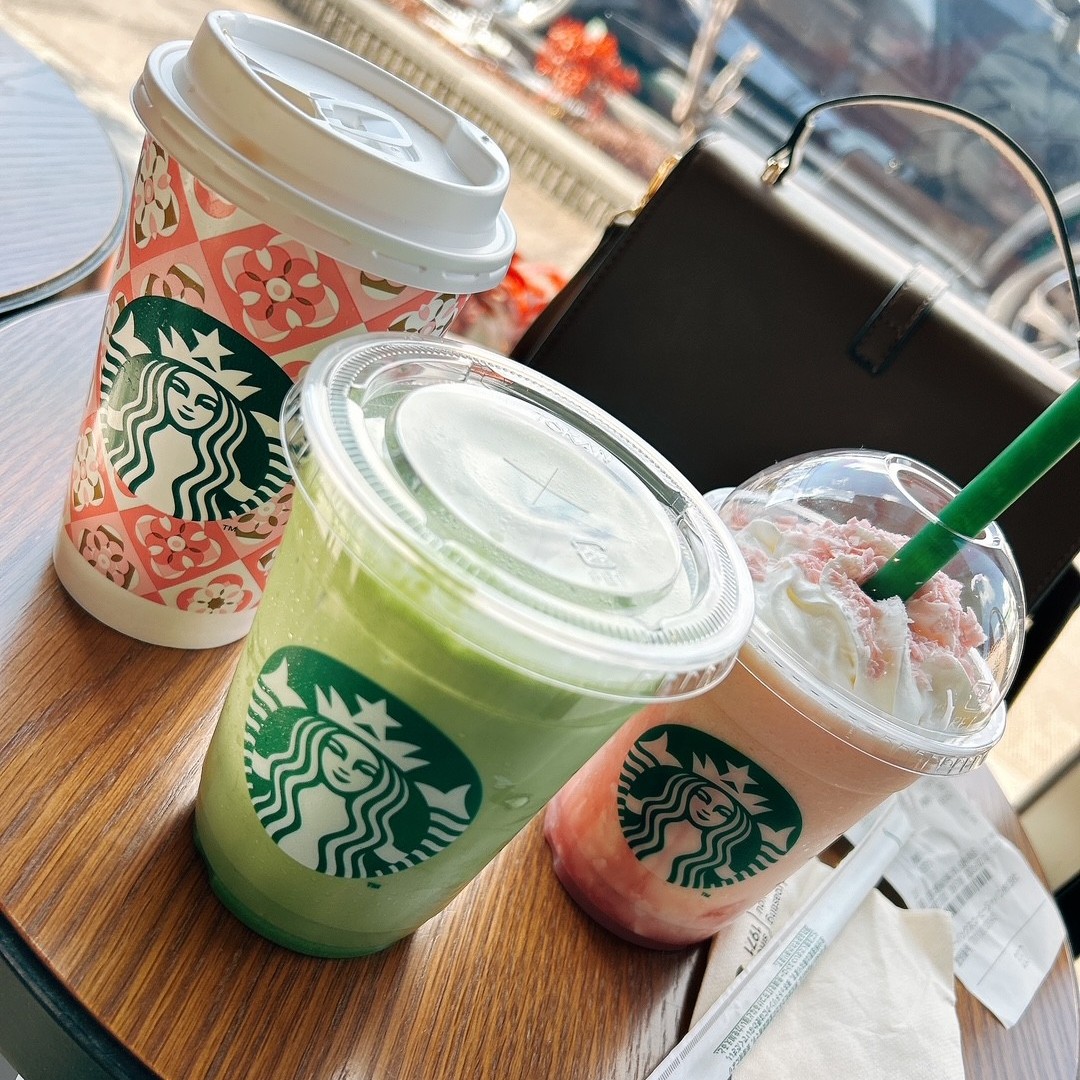 おはようございます☀株式会社ENEOSウイングセルフ天竜川SSのたきぐちです!先日、前職の同僚たちで亀庵でランチしたというブログをあげましたが、そのあとにスタバへ行ってきました♪これる人だけで行ったので、3人でしたが亀庵の後もスタバで話しまくりでした(笑)今は新作の桜が出ましたね♪それもおいしそうだったのでとっても迷ったのですが、わたしは当店のスタッフに教えてもらった抹茶ティーラテのカスタムver.にしました💛アイスの抹茶ティーラテのブレベミルクに変更、抹茶パウダー多めのカスタムです!これが抹茶が濃厚になって、甘くて最高においしいのです♪教えてもらってからハマってしまって、最近は大体これです(笑)みなさまもぜひ試してみてくださいね♪職場の話や最近の近況など、話が止まらなくてとっても楽しかったです♡楽しすぎて、また3月に集まる予定なのでまた語りまくりたいです!その時はまたブログあげますね!それでは~