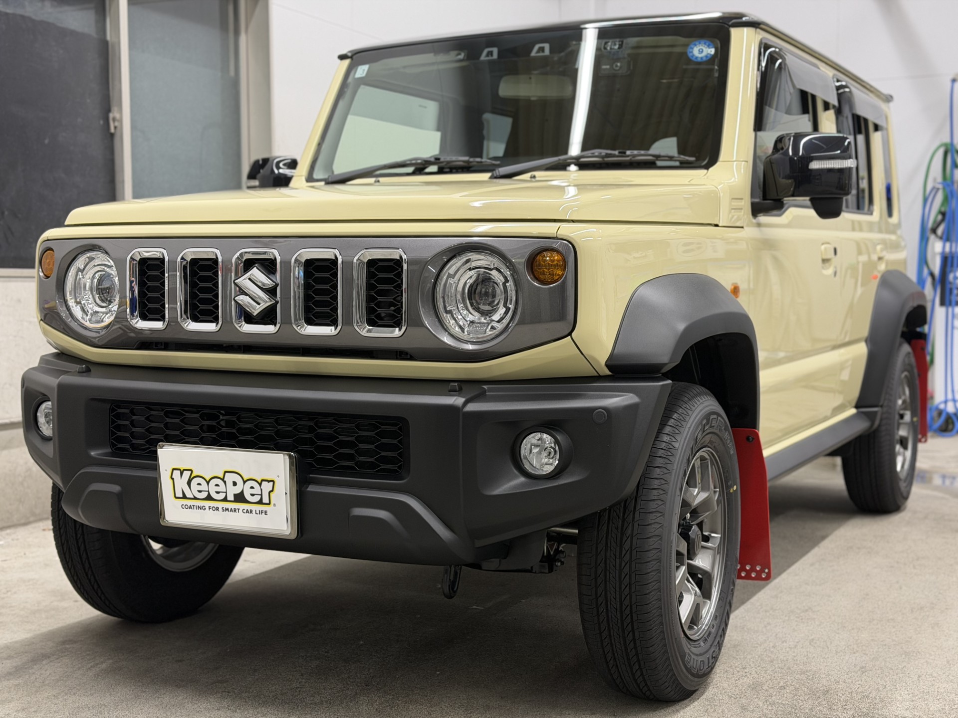 本日は、スズキのジムニー ノマドに「ダイヤⅡキーパープレミアム」を施工しました!✨セルフ天竜川SSでの施工となります。新車のピカピカの状態を、さらに際立たせるために、ダイヤモンドキーパーの技術を駆使しました。