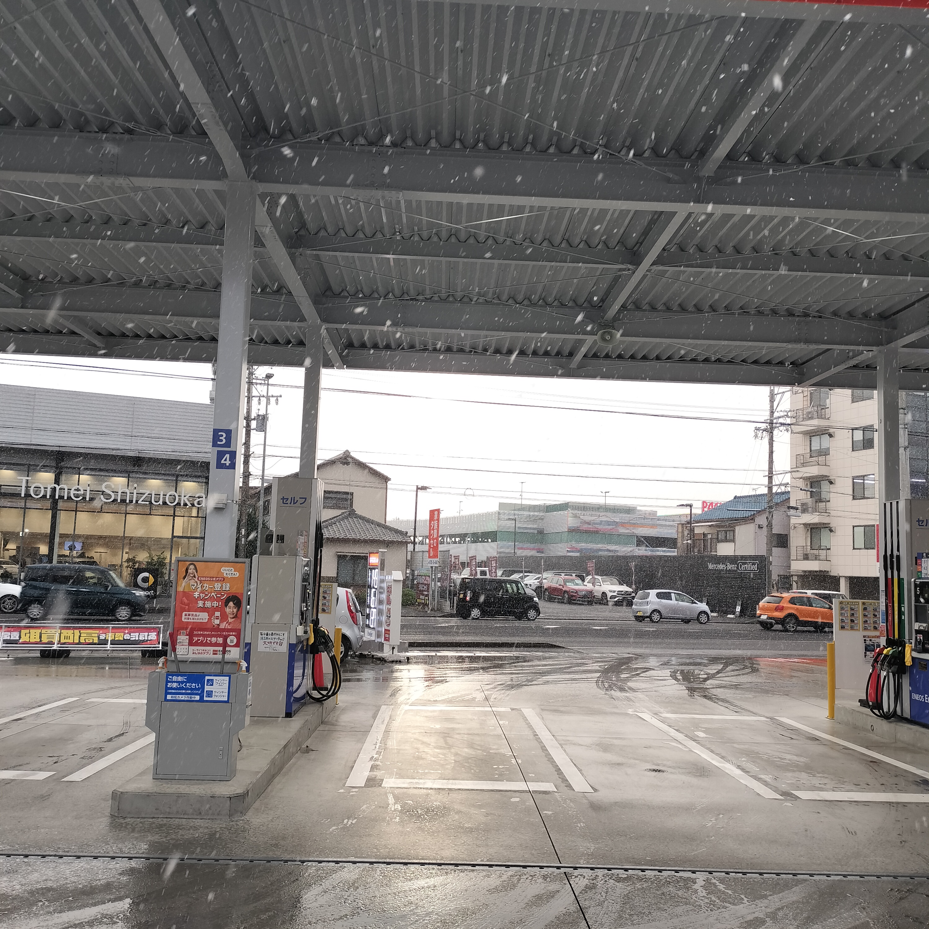 こんにちは!EneJetセルフ静岡インターSSの善君です😊昨日は静岡でも珍しく雪が降りましたね⛄️お客様との「雪、すごかったですね!」なんて会話で盛り上がりました。寒さも本格的になってきて、冬本番を実感しています。さて、こんな寒い時期に気になるのが愛車のメンテナンス。特に雪や凍結防止剤がまかれるこの季節、車の下廻り(車体の底部分)へのダメージが心配ですよね🚗✨当店では、下廻りのコーティングをおすすめしています。これは、雪道や道路にまかれた塩分から車体をしっかり守るための防錆対策です!普段は見えない場所ですが、冬こそケアしておくと安心です。もちろんボディのコーティングも人気です!ツヤを出すだけじゃなく、汚れや雪、雨からもしっかりガードしてくれるので、お手入れがグッと楽になりますよ。せっかく洗車するなら、この季節はコーティングでプラスαの安心感をプラスしてみませんか?また、この時期は定期点検も大切です。ワイパーやオイル交換はもちろん、ウォッシャー液の補充やタイヤの空気圧チェック・タイヤの減り具合も見逃せません。寒さでバッテリーが弱くなることも多いので、「最近エンジンのかかりが悪いな…」と感じたらお気軽にご相談ください!ガソリンスタンドだからこそできるスピーディーな点検・アドバイスで、お客様の冬ドライブをサポートします。天気予報ではまだまだ寒さが続きそうなので、早め早めのお手入れがおすすめです❄️EneJetセルフ静岡インターSSでは皆さまのお越しをお待ちしています!ご質問などあればスタッフ善君までお気軽にどうぞ😊安全で快適なカーライフを一緒に楽しみましょう!