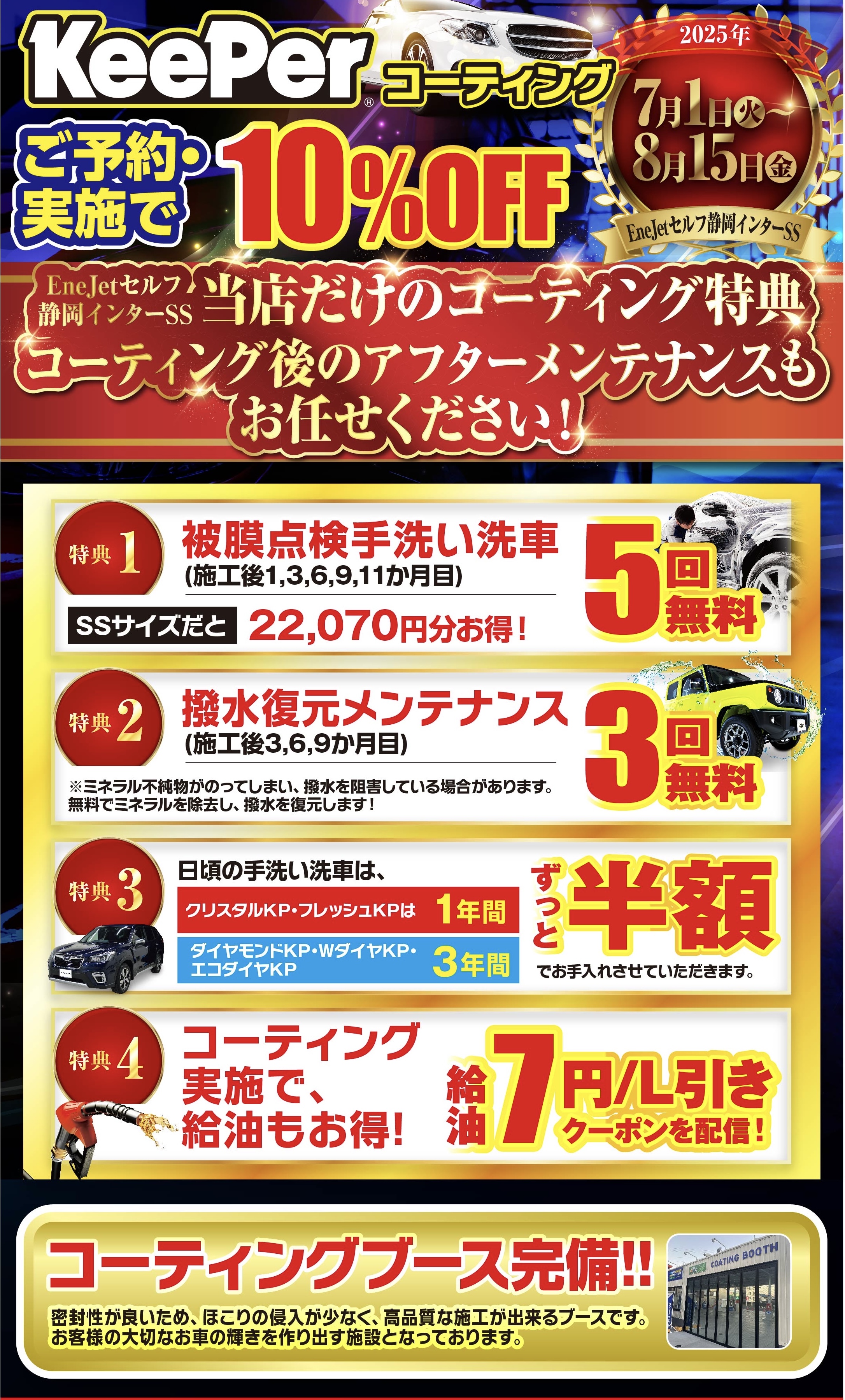 こんにちは!EneJetセルフ静岡インターSSのSSマネージャーです😊✨ 今日は皆さんにお得な情報とこれからの季節に向けた車のお手入れについてお話しします!