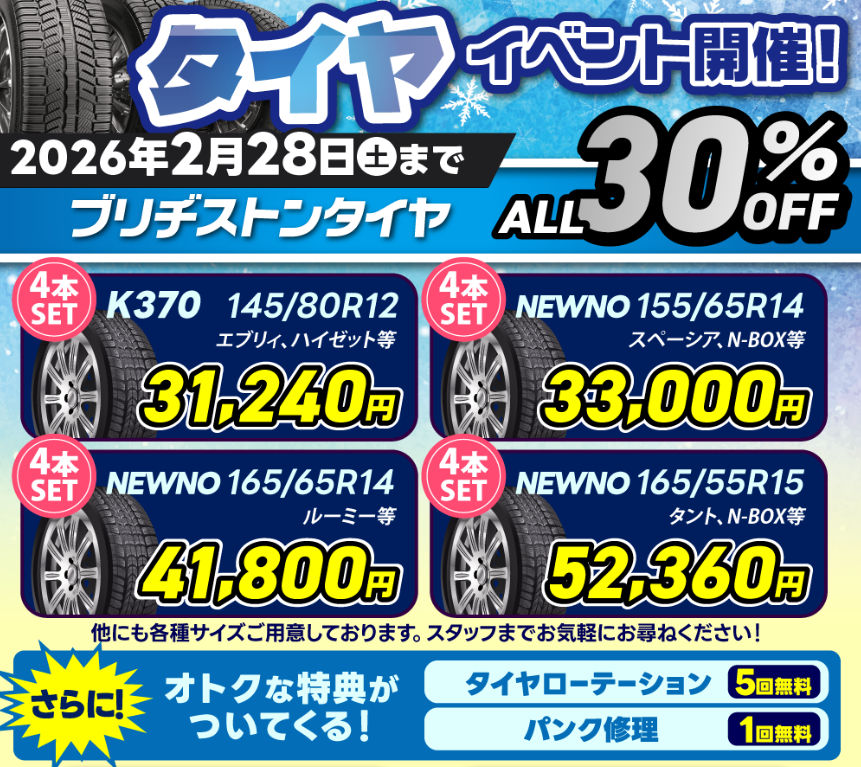 - 2026.2.15 冬⛄のお得なキャンペーン大特集✨✨タイヤ🚙✨フロントガラス✨ヘッドライト✨エアコンフィルター✨