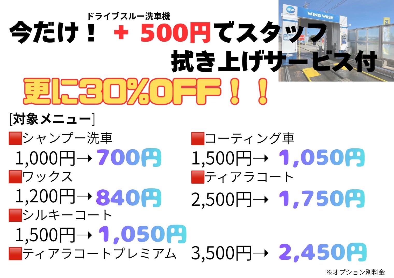 冬の愛車ケアに最適 ドライブスルー洗車30%OFFキャンペーン🚗