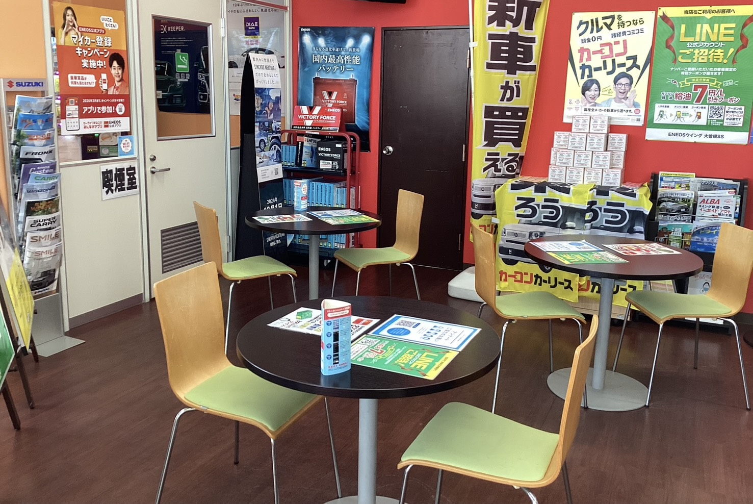 大曽根SSは、志賀本通駅から約2分、杉栄町5交差点近くに位置します。 通りに面しているので、出入りがしやすく、運転に自信のない方でも気軽にお立ち寄りいただけます。 給油サービスのほか、車検、板金、コーティング、カーリースといったメニューも取り扱っておりますので、お車のお困りごとがございましたら、ぜひ当店へご相談ください。 休憩スペースも完備しておりますので、作業中はゆっくりとお過ごしいただけます。 お支払いは現金、各種カードのご利用が可能です。 お客様が安心してカーライフをお楽しみいただけるよう、スタッフ一丸となってサポートいたします。 近くにお越しの際は、ぜひお立ち寄りください!