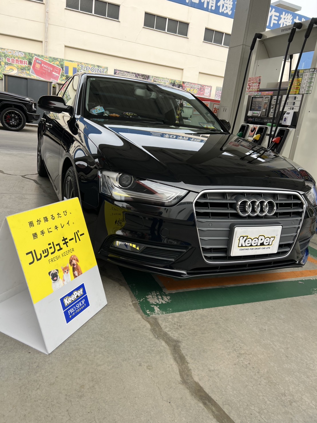 アウディA4の輝きを取り戻すために、機械団地TSでフレッシュキーパーとWホイールコーティングを施工しました✨。施工前はホイールの汚れが目立っていましたが、丁寧にクリーニングし、コーティングで見違えるほどの美しさに🌟。