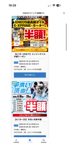 手洗い洗車とオイル交換が半額になってます!!