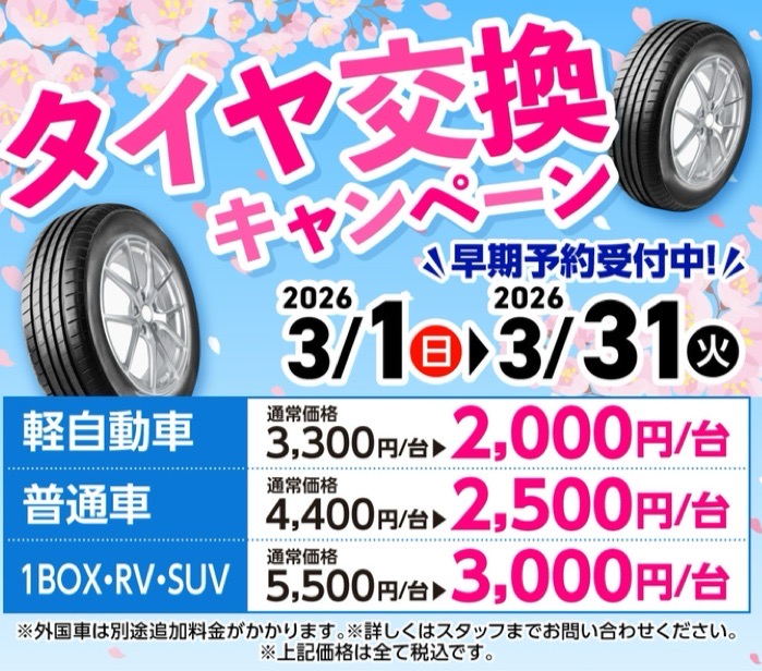 春のタイヤ脱着キャンペーン開始!栗東ひがしTSで安心メンテ🚗