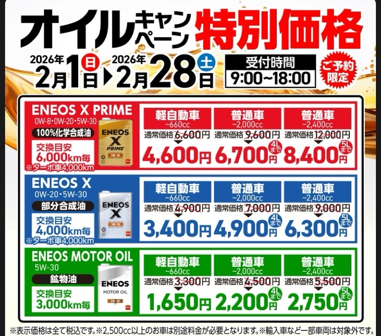 冬の愛車メンテナンスと2月限定オイルキャンペーン情報🚗