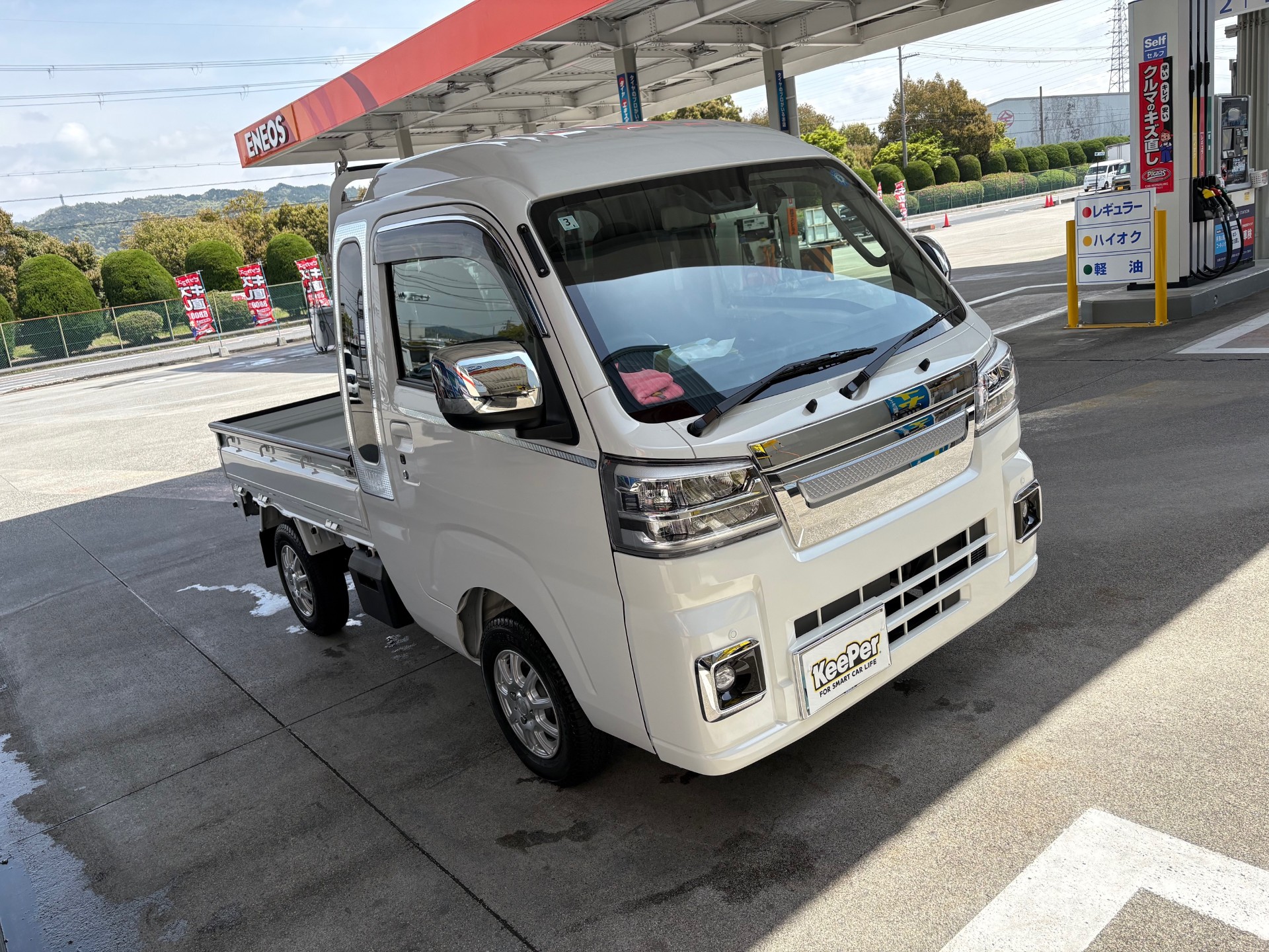 4月17日、栗東ひがしTSにてダイハツのハイゼットに「ダイヤⅡキーパー」を施工しました🚗✨。施工前の状態は水垢が目立っていましたが、ダイヤⅡキーパーの力で見違えるように美しくなりました。