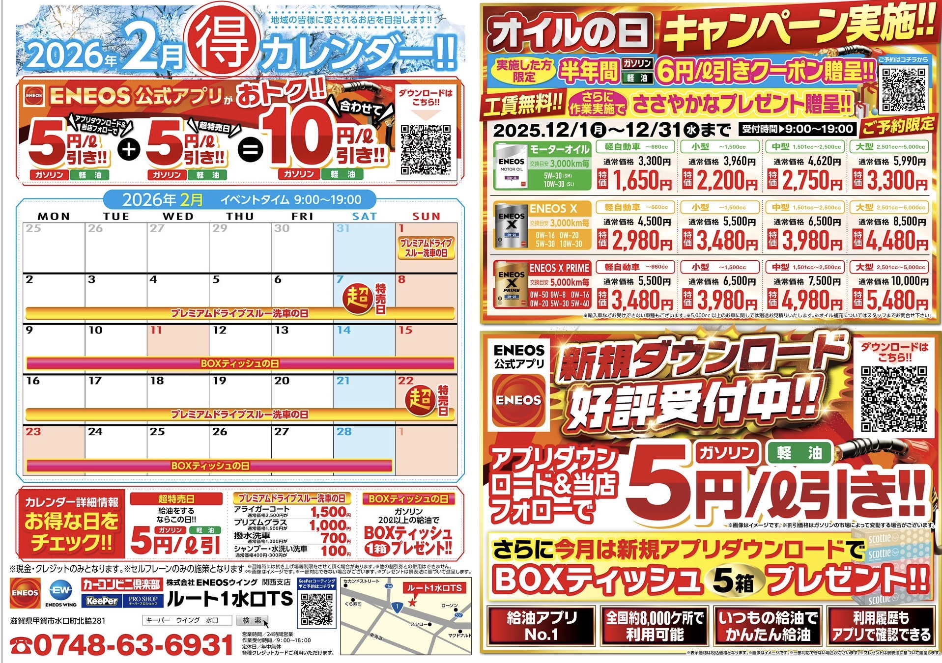 オイル交換半額!!更に実施で半年間使えるガソリン7円/1ℓクーポン贈呈!!キーパーコーティング10%オフキャンペーン!!車の傷直し10%オフキャンペーン!!1ヶ月間手洗い洗車土日1,000円キャンペーン!!